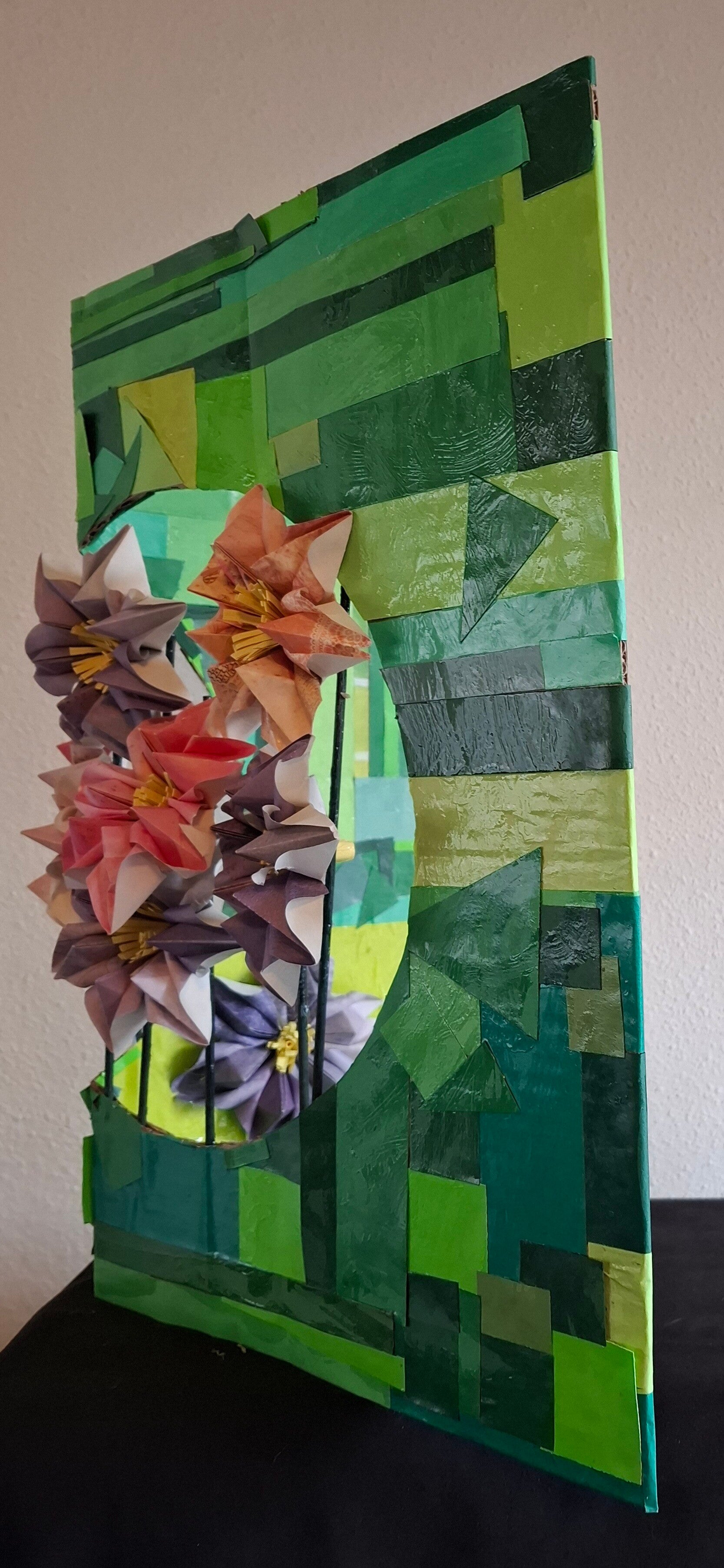 Dit bloemstuk is gemaakt van papier. Papier dat niemand meer wilde, dus duurzaam. Minder milieubelastend als echte bloemen, en ze blijven langer staan. Dus mooi cadootje.Heb ze in verschillende kleuren.