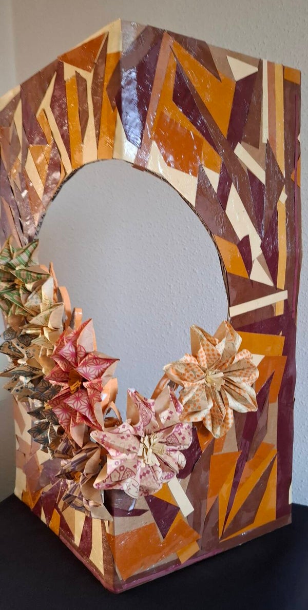 Dit bloemstuk is gemaakt van papier. Papier dat niemand meer wilde, dus duurzaam. Minder milieubelastend als echte bloemen, en ze blijven langer staan. Dus mooi cadootje.Heb ze in verschillende kleuren.
